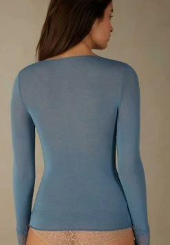 Intimissimi Damen PRETTY FLOWERS – Langarmshirt – Multifarben – 347i – Blu Intenso/vanilla